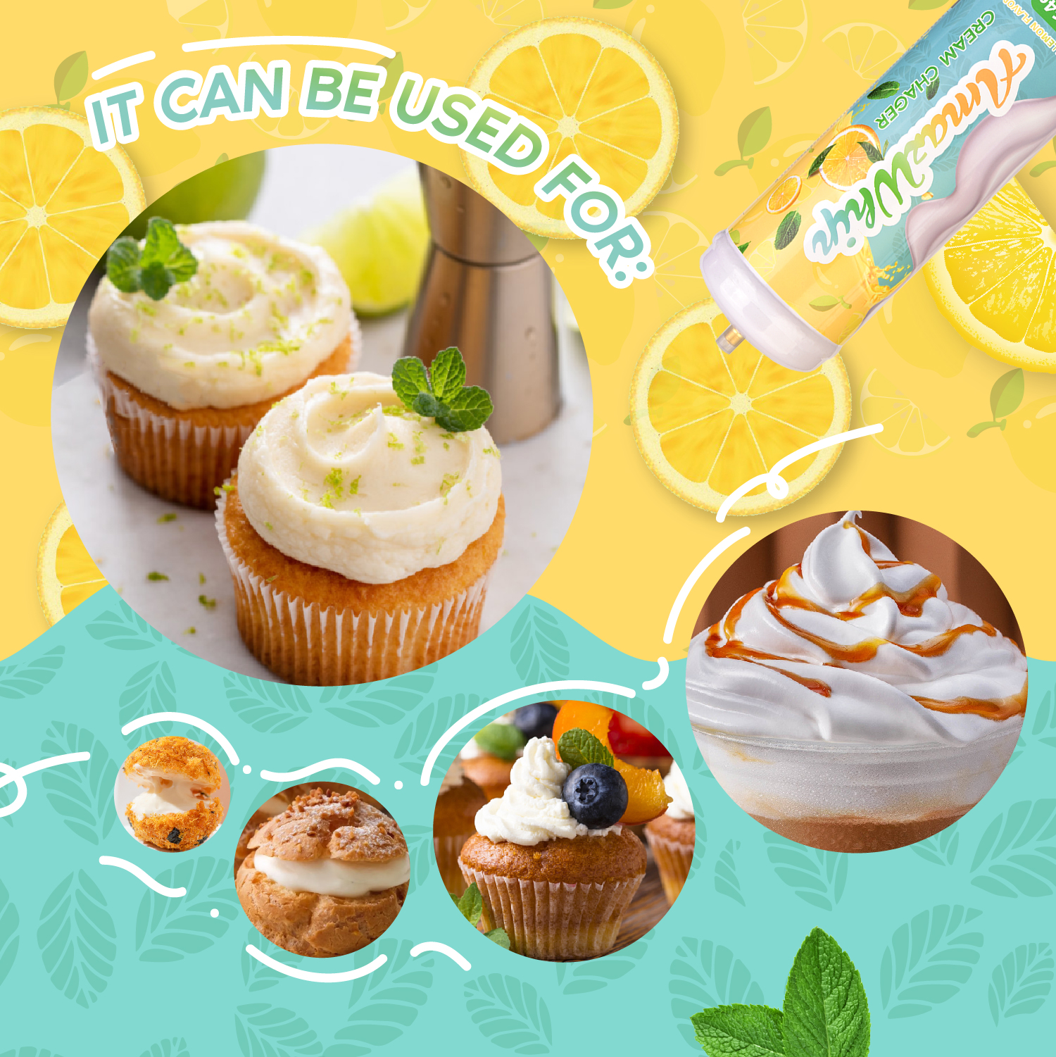 Cylinder tank is made of thick stainless steel. It outperforms traditional means of whipping than other modern cream chargers, because of less wastage. The release of N2O gas is measured depending on preference. Flavors such as: Blueberry, Lemonade, Mango, Orange Watermelon, Strawberry, vanilla …etc.